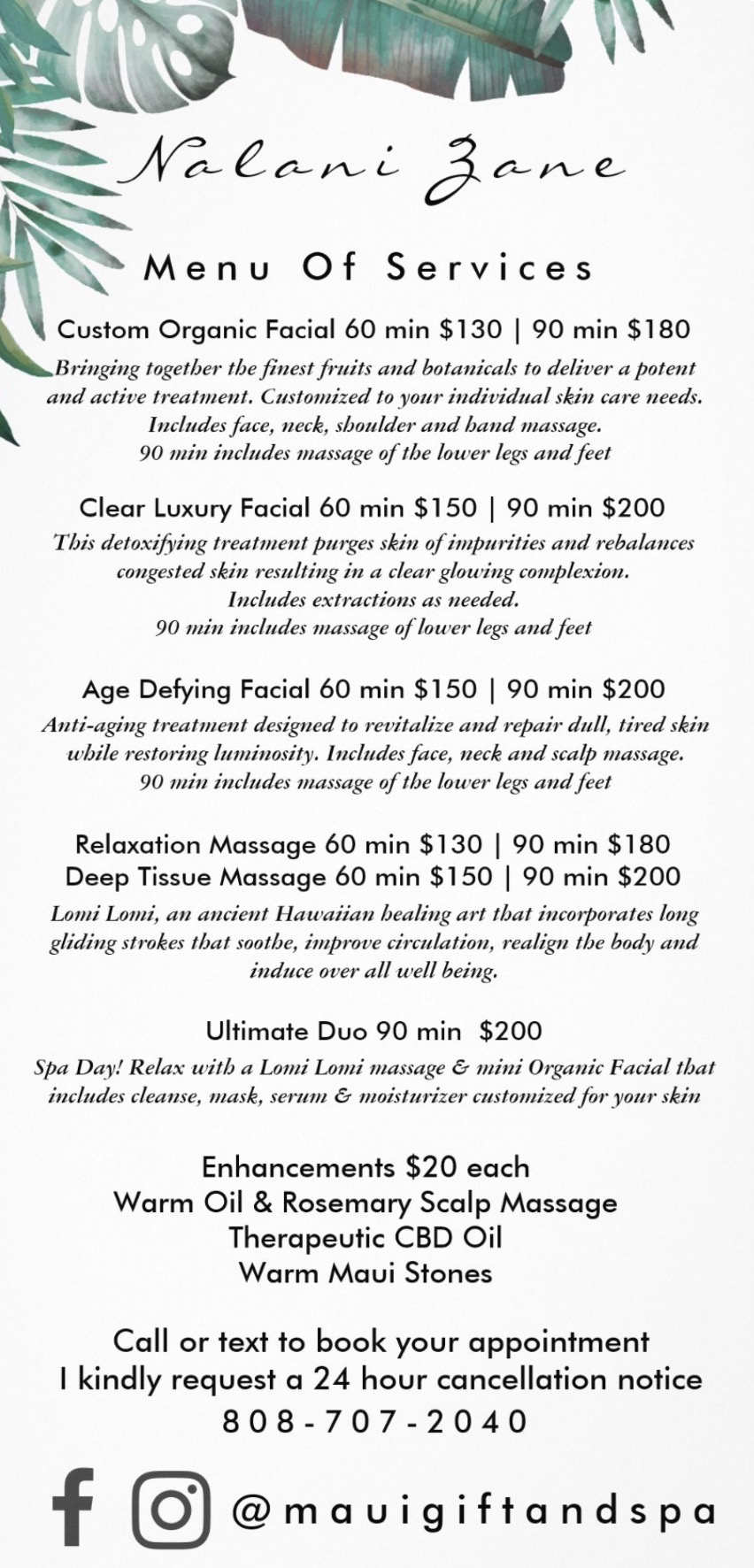 Text (808)707-2040 0r email aloha@mauigiftandspa.com