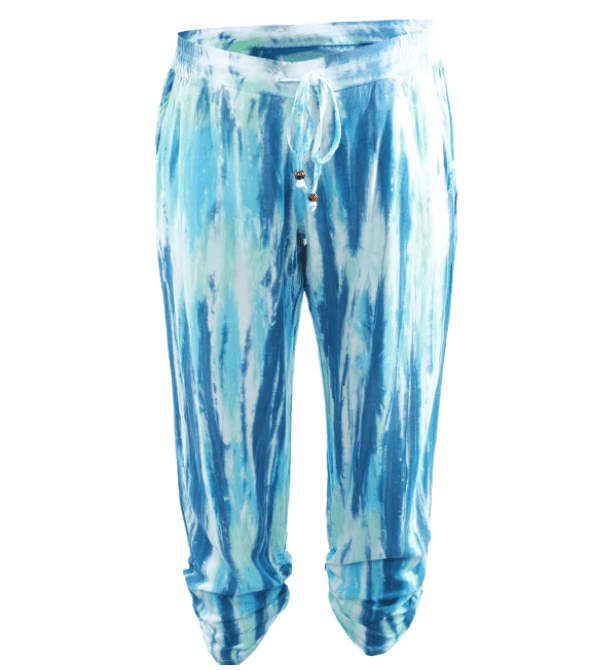 Adjustable drawstring waist with bead detail that runs all the way through.