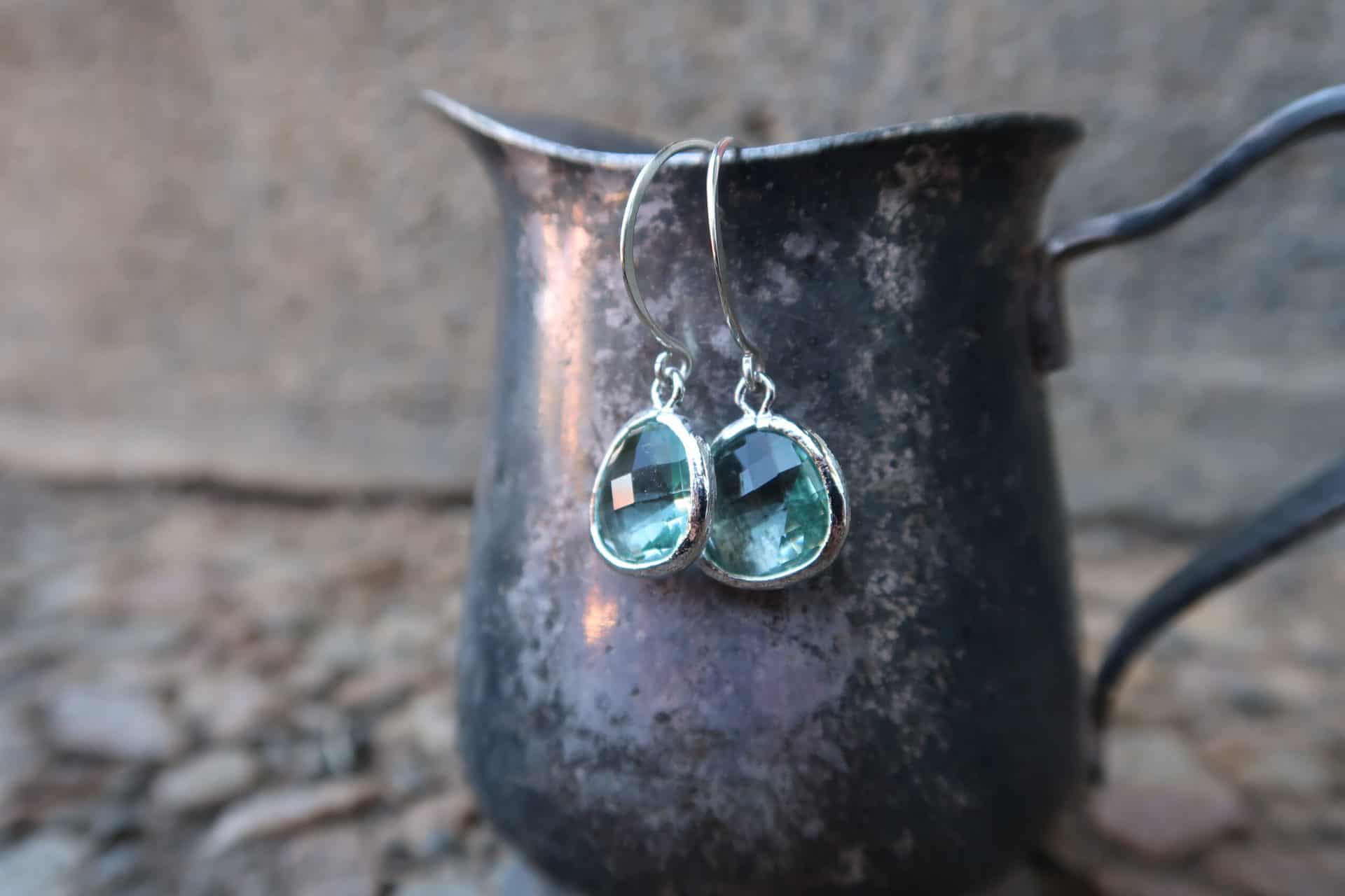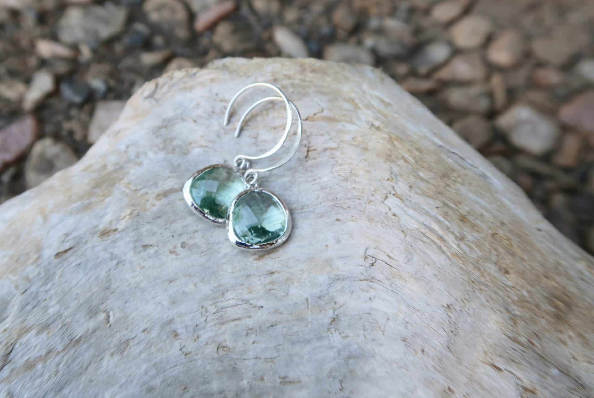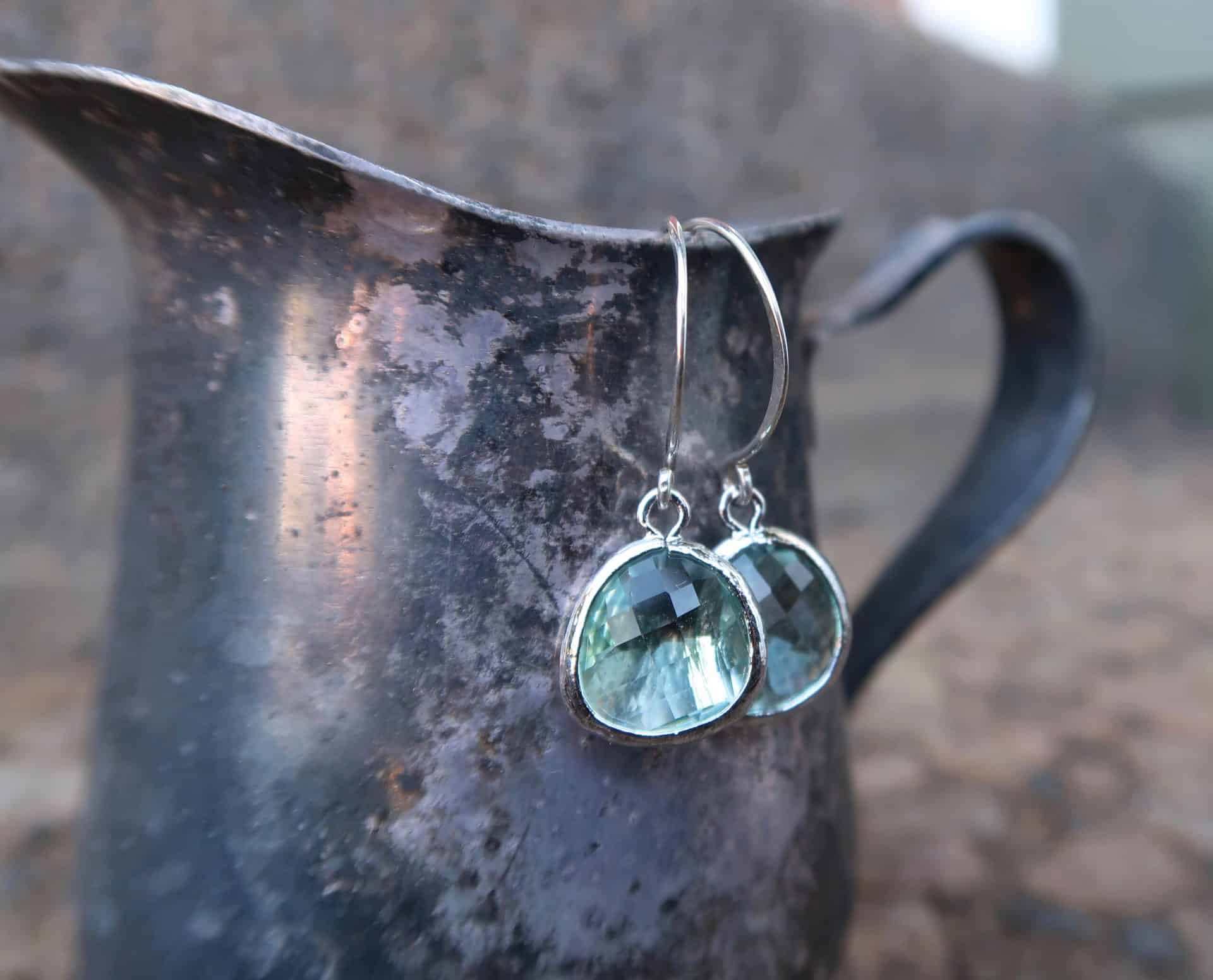 Ernite faceted glass drops dangle down from hand made sterling silver ear wires.