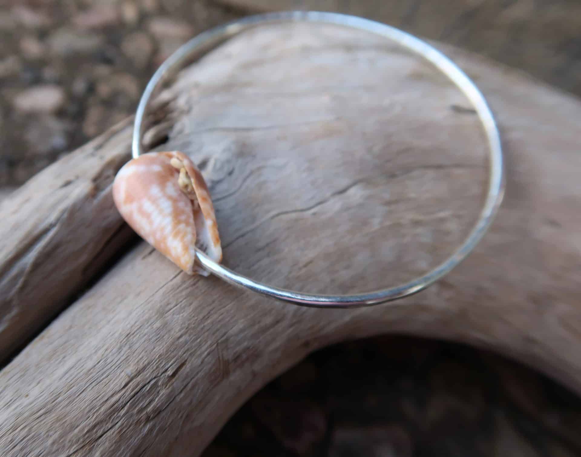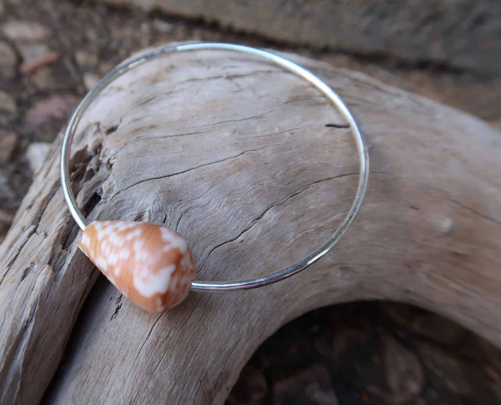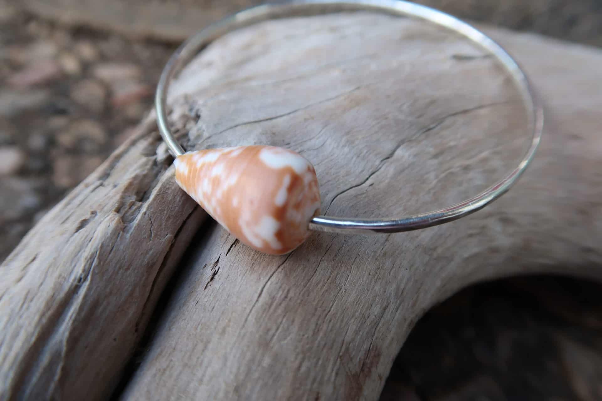Sold Out ~ Beautiful speckled brown cone shell on hand forged sterling silver bangle