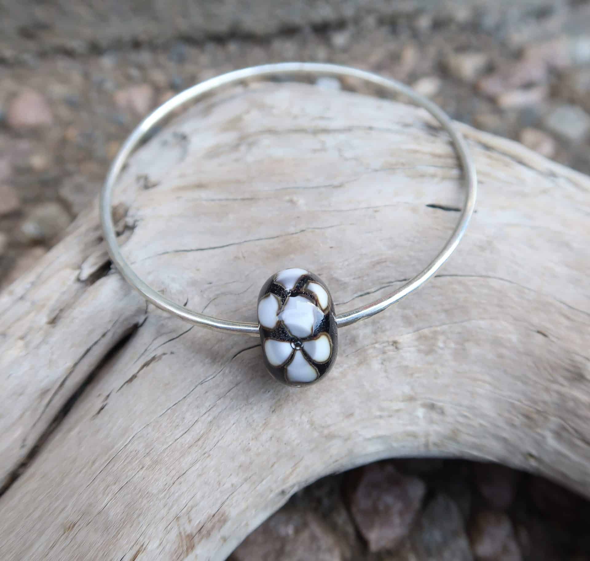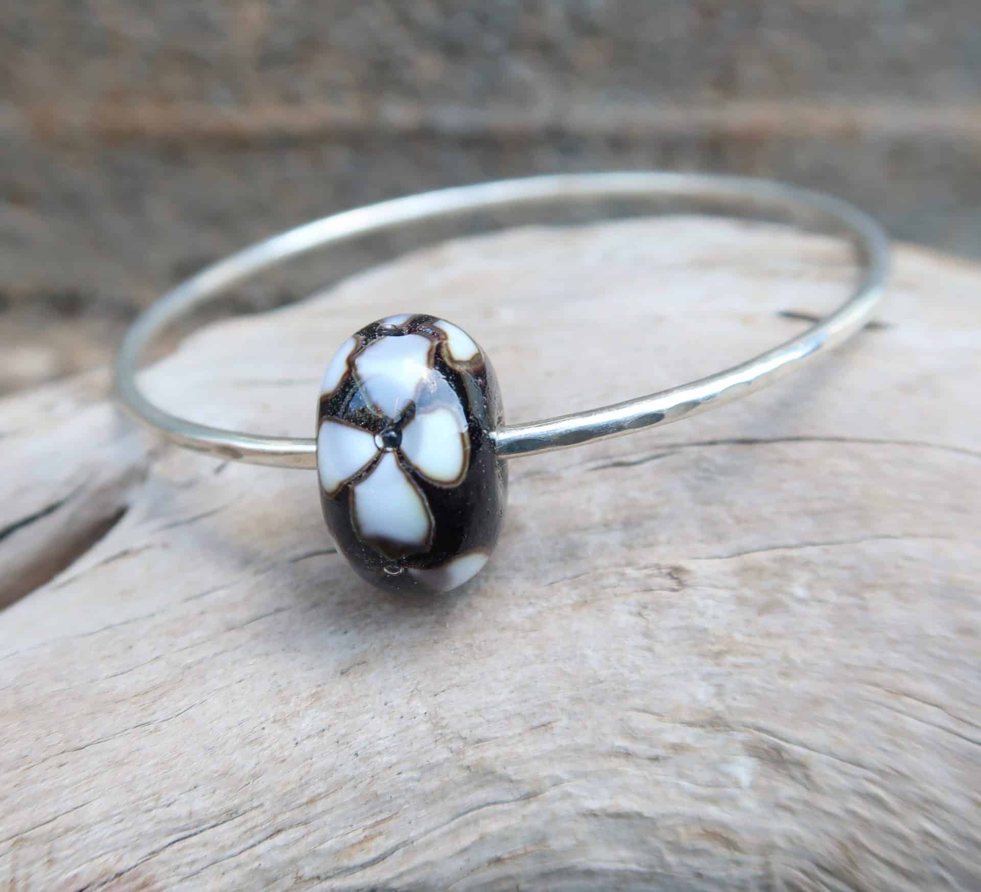 Sterling silver bangle with lamp worked glass plumeria bead
