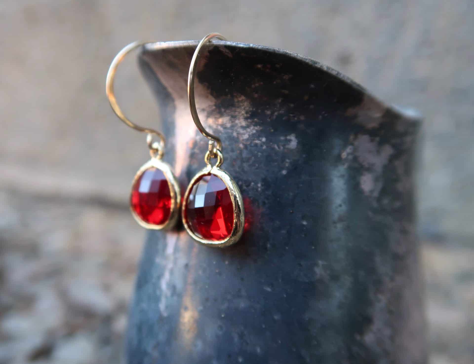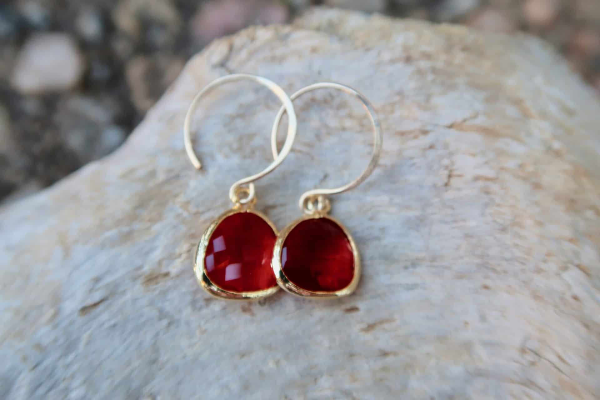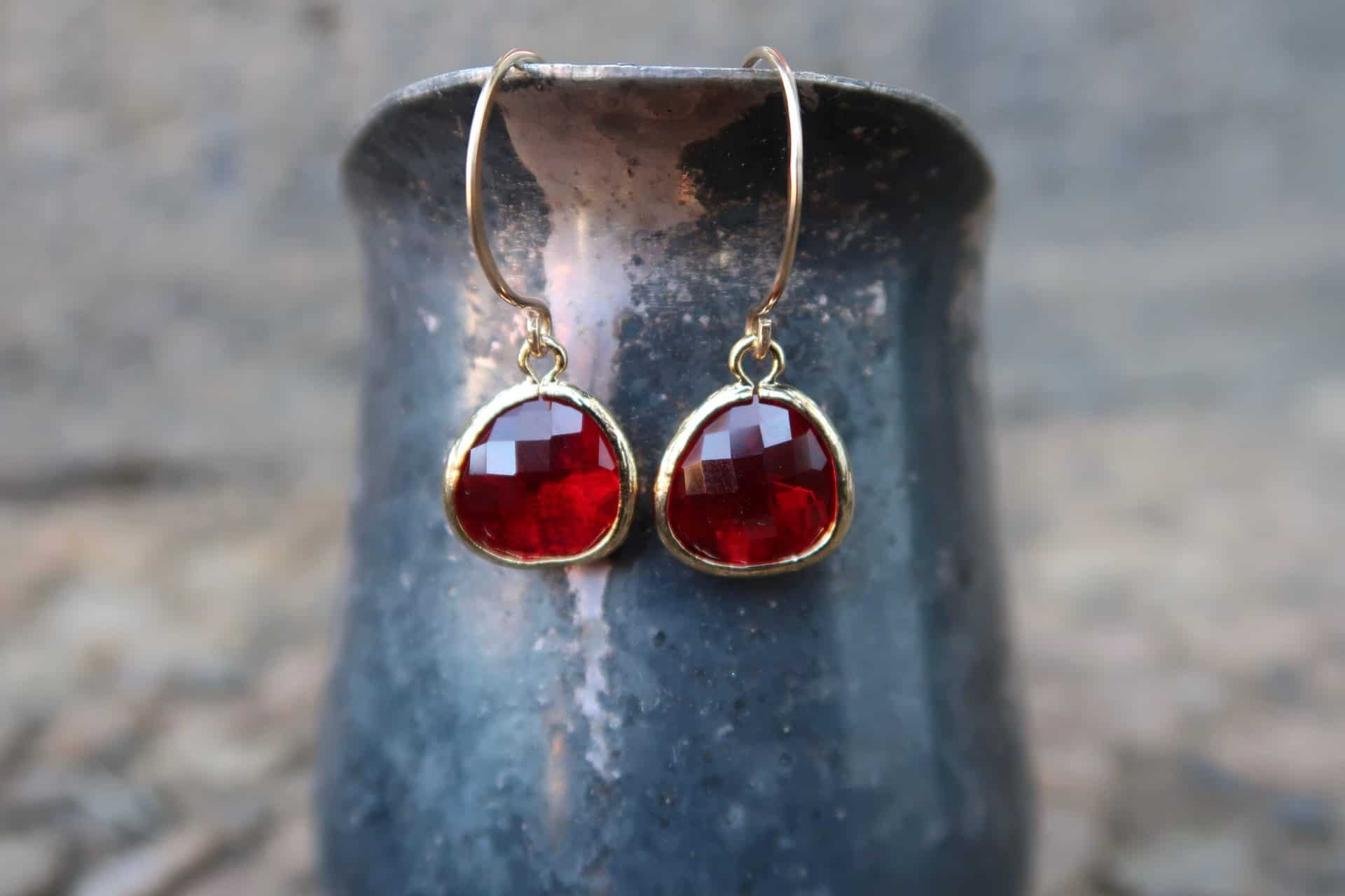 Ruby red faceted glass drops dangle down from hand made 14k gold filled ear wires. These measure about 1 1/4inches long from the top of the ear wire to the bottom of the dangle. Simple and elegant. Perfect for day or night!