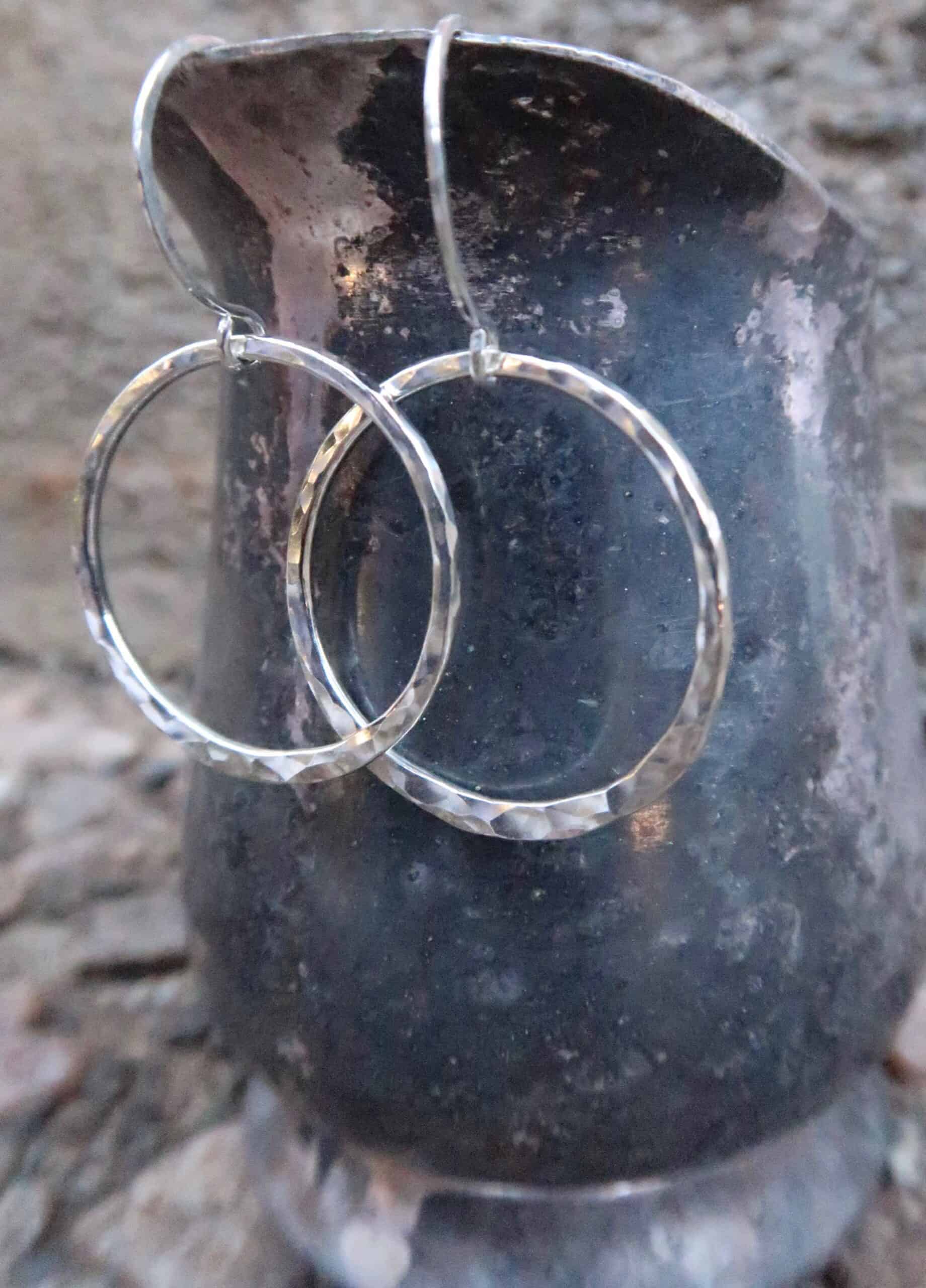 Mahina ~ Hawaiian Moon~ Hand forged sterling silver hoops on hand made sterling silver ear wires. Sizes: