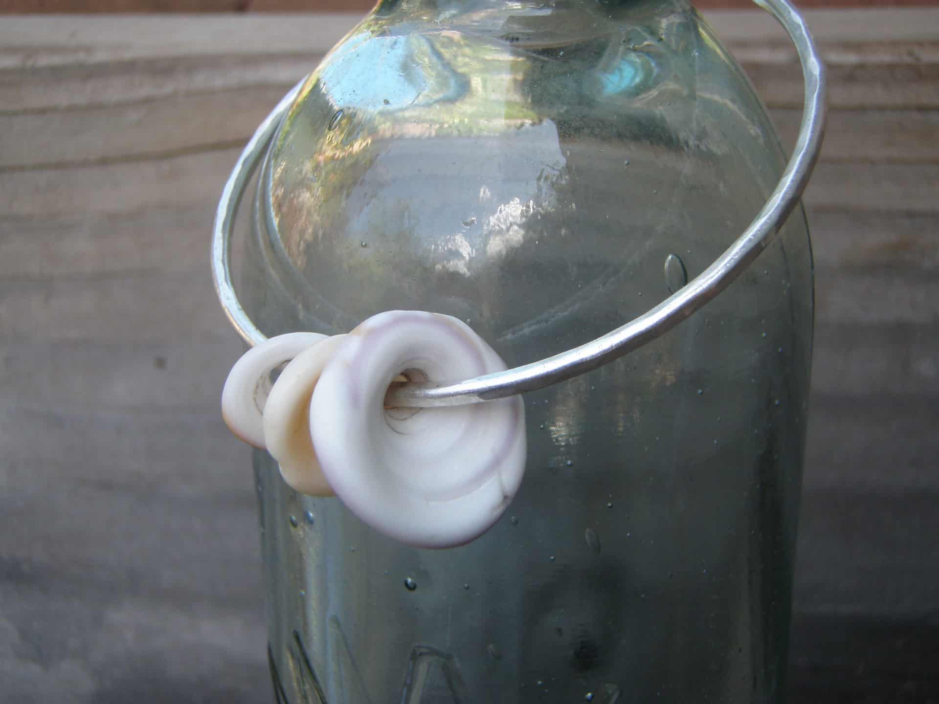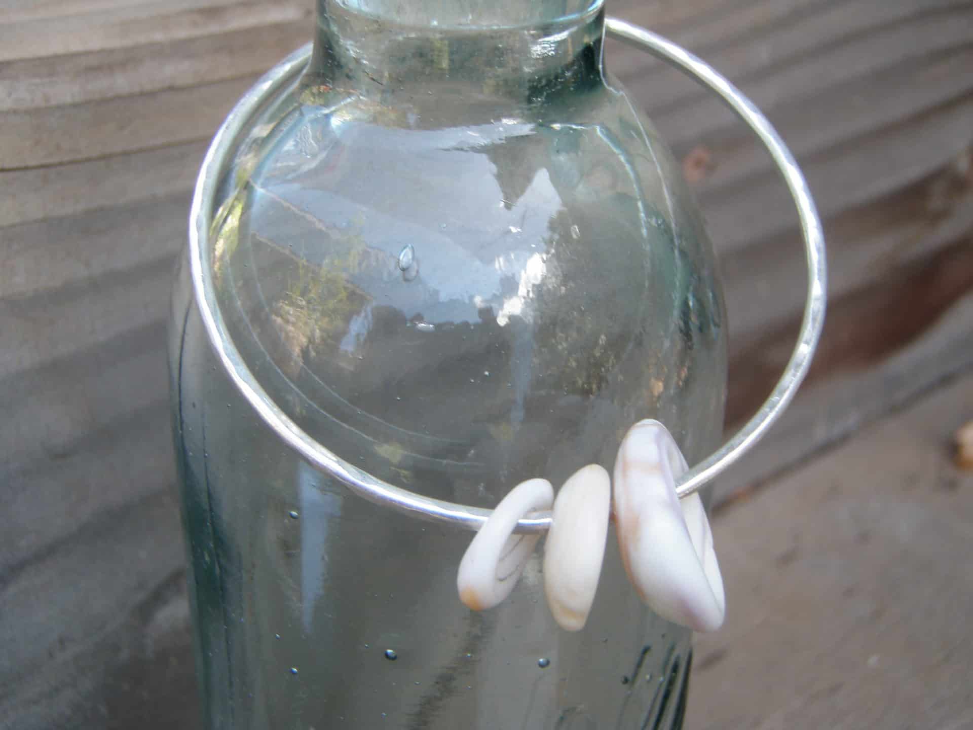 Pictured: A sterling silver puka shell bangle size x-small with a hammered finish.