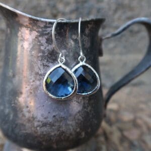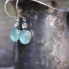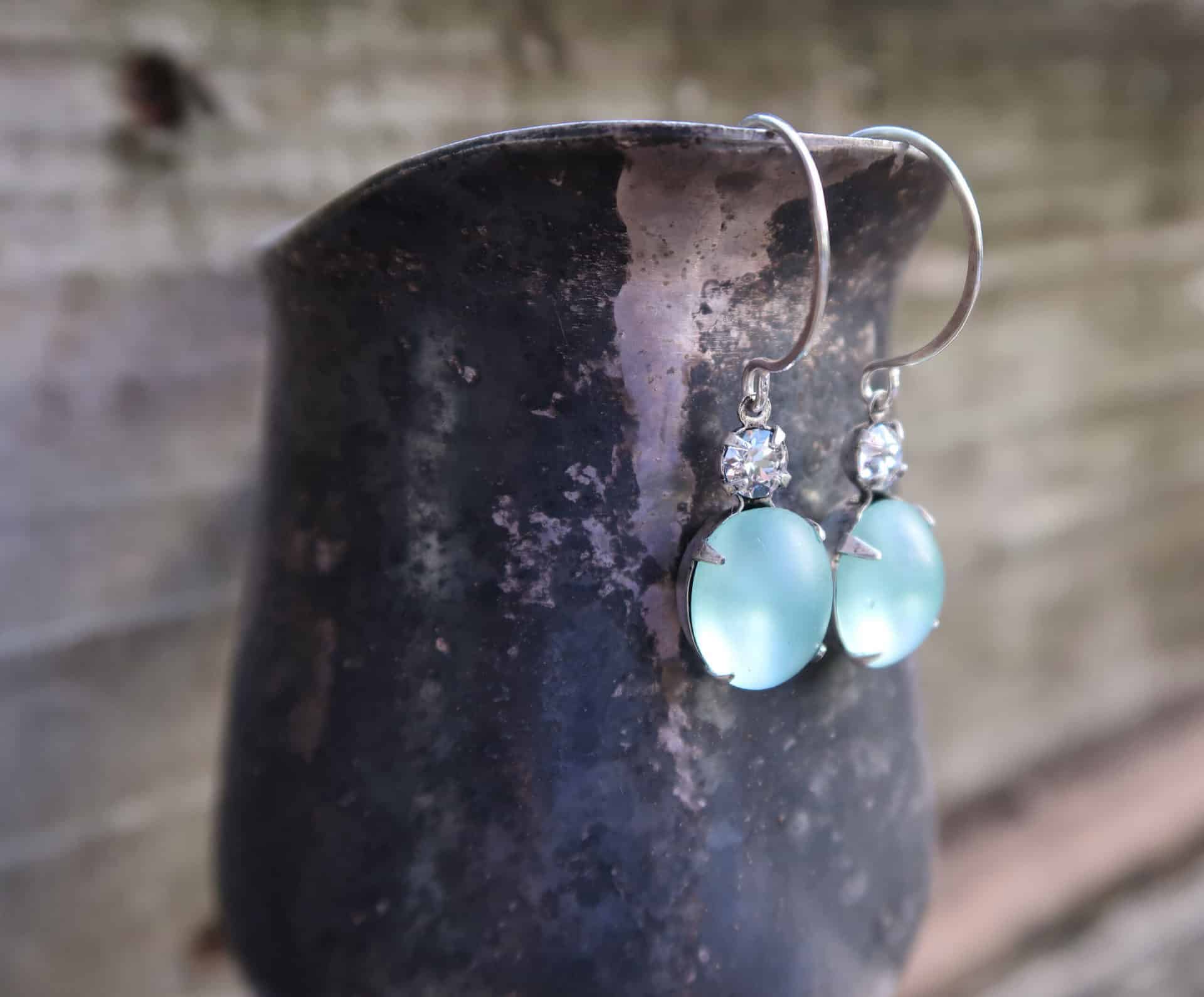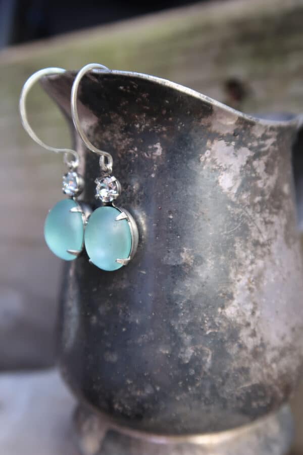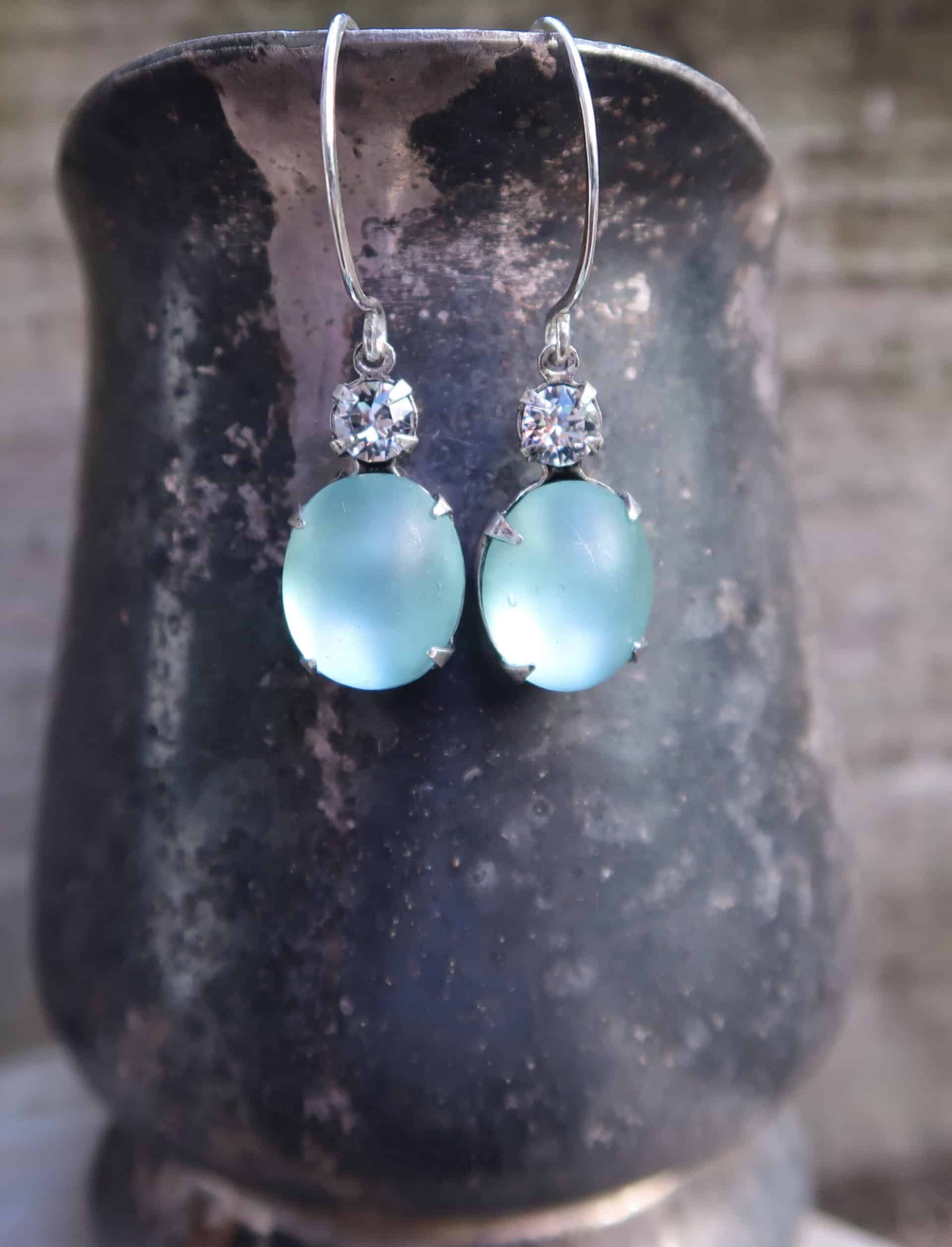 Vintage 1950’s Swarovski Crystal and West German frosted aquamarine glass on hand made sterling silver ear wire