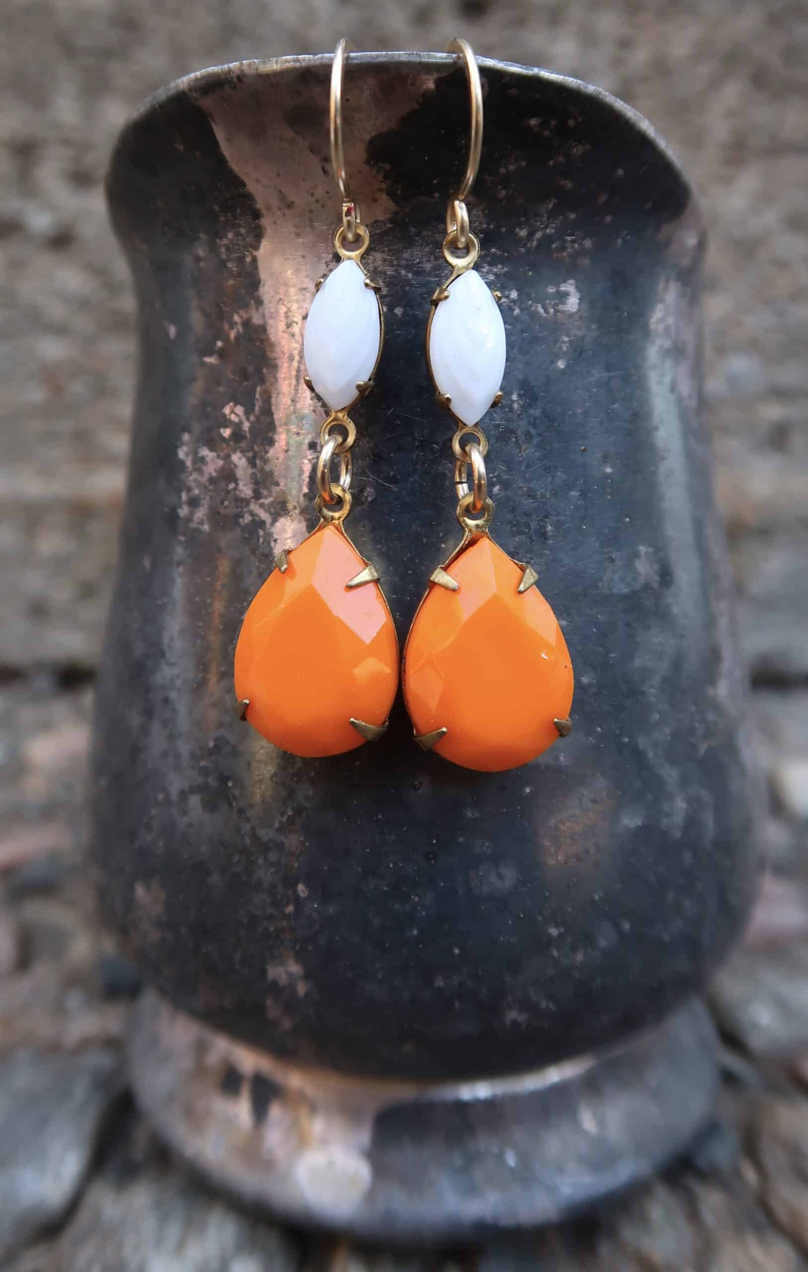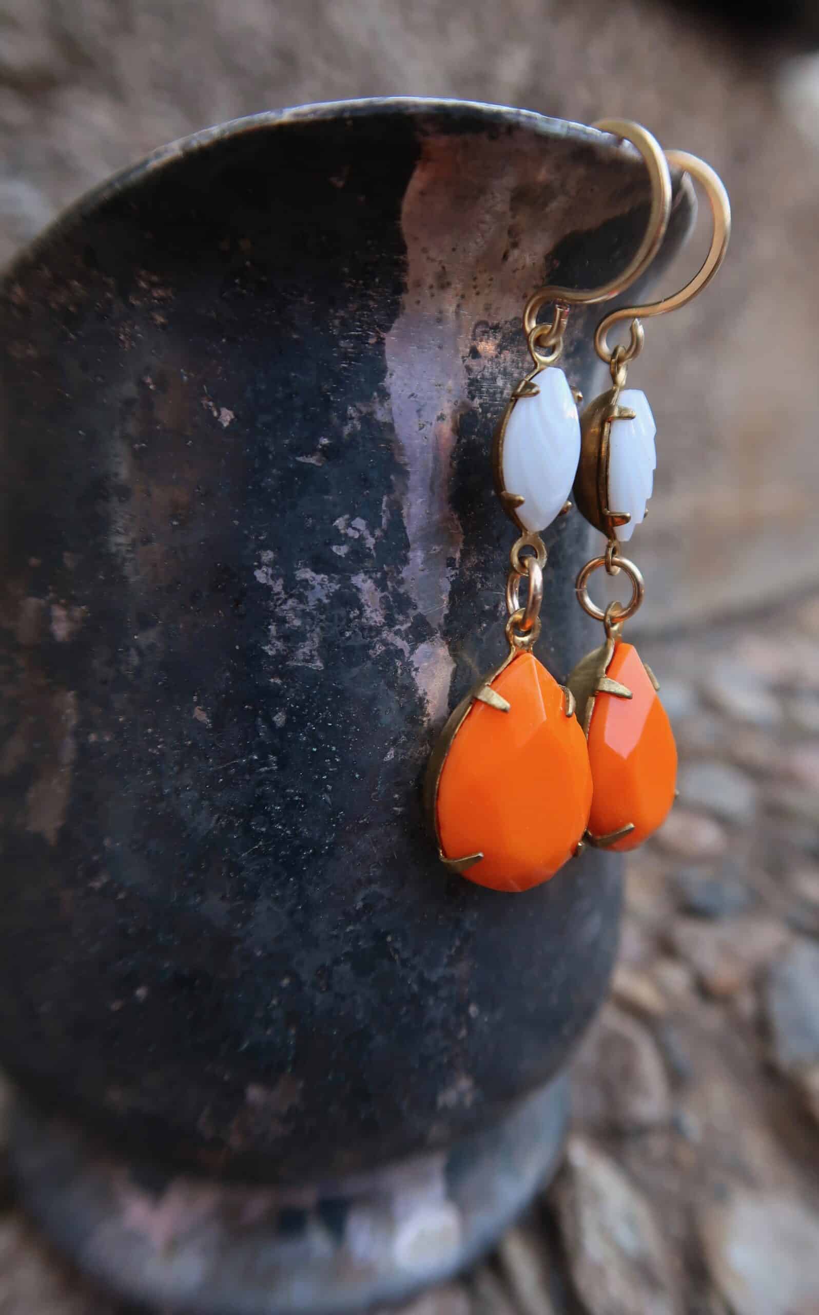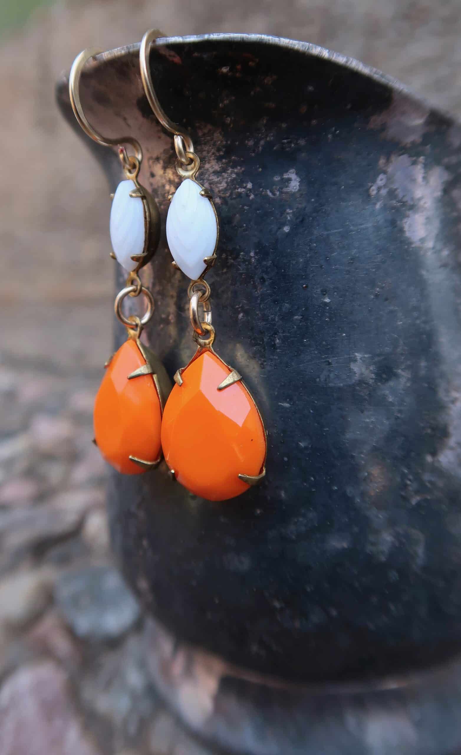 Vintage Tangerine & Milk glass Earrings