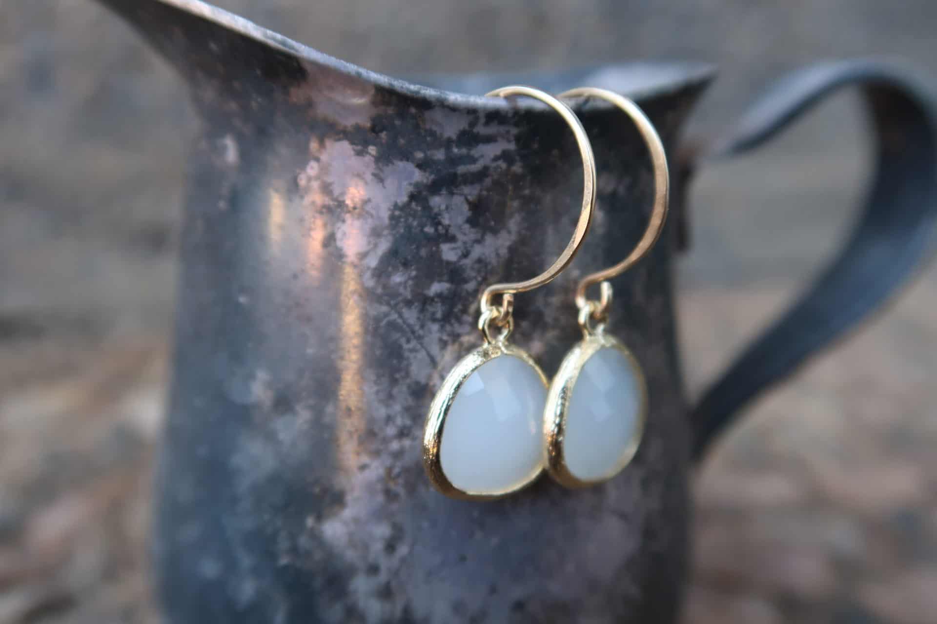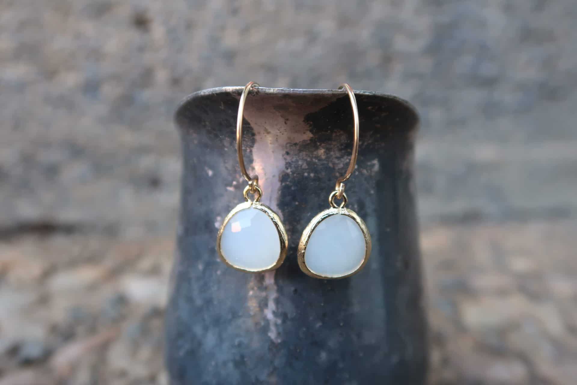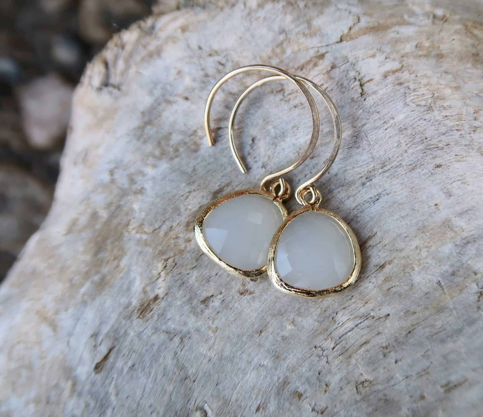 White Cloud faceted glass drops dangle down from hand made 14k gold filled ear wires. These measure about 1 1/4inches long from the top of the ear wire to the bottom of the dangle.
